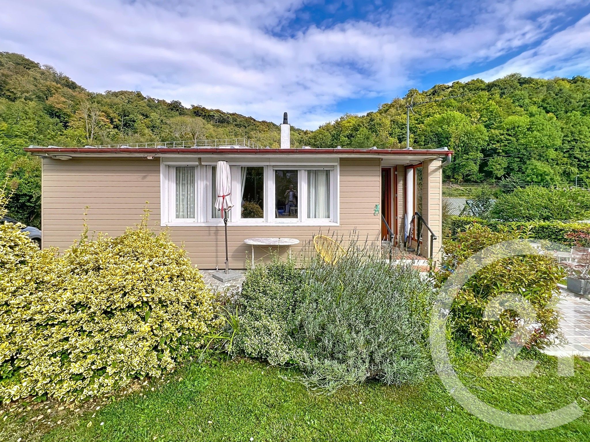 La terrasse pavée entourant la maison a été refaite récemment. Une autre terrasse couverte dans le jardin appelle à la détente et au repos.