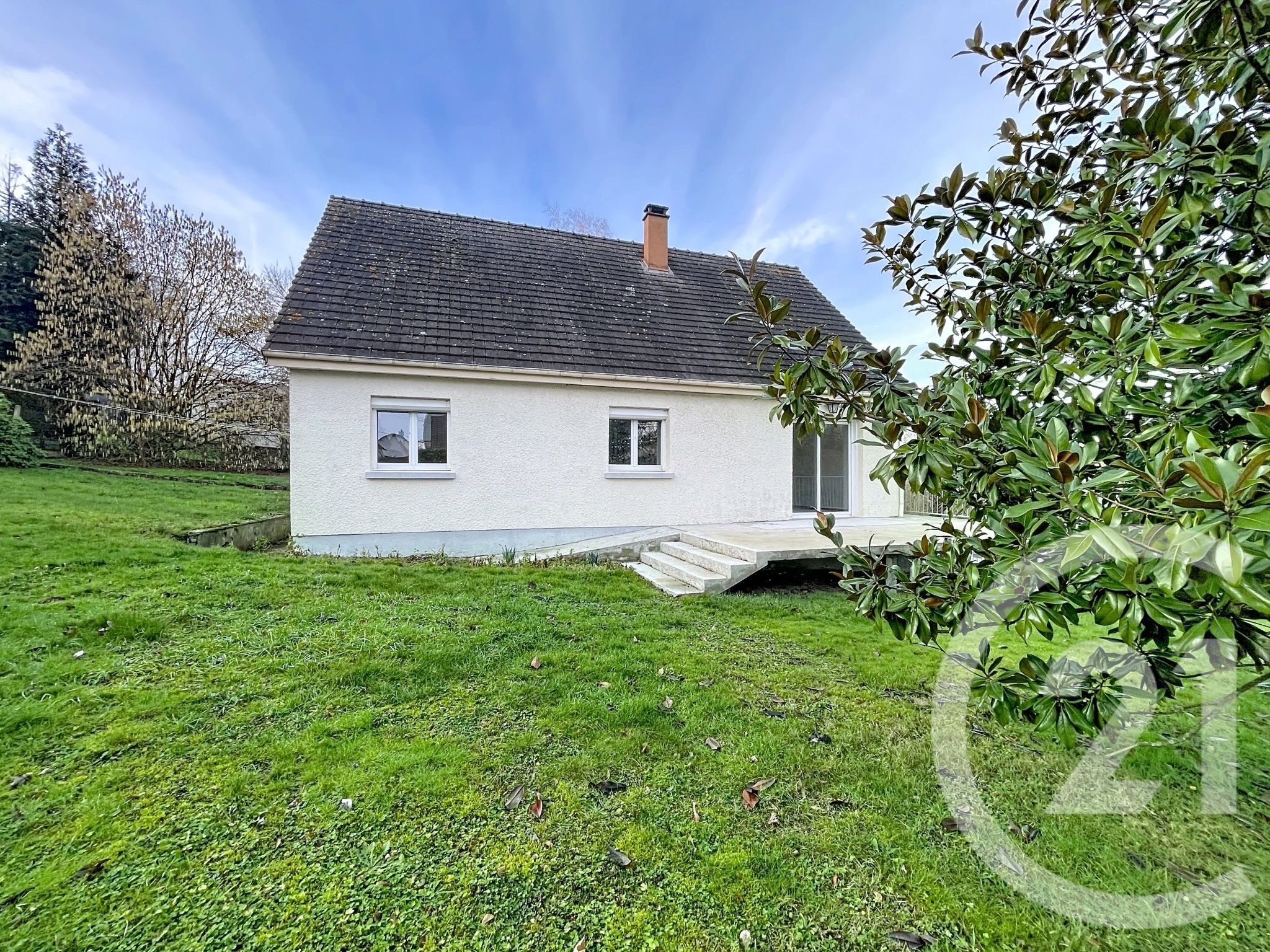 Maison sur sous-sol complet comprenant un salon séjour , une cuisine aménagée et semi équipée avec plaque de cuisson, four et hotte, 3 chambres, une salle de douche et un wc séparé. Le tout sur un terrain d'environ 700 m².